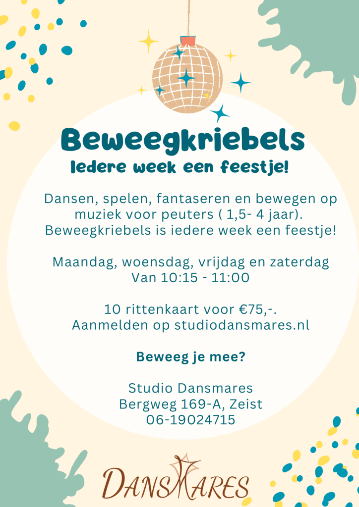 Beweegkriebels, danslessen voor peuters van 1,5 tot 4jaar bij Dansmares