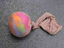 Pak de wol vervolgens samen tot een balletje en stop deze in een panty, knoop de panty dicht strak om het bolletje wol.